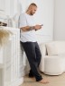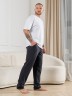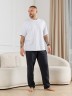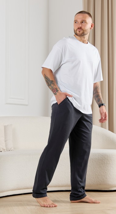 Брюки мужские из гладкокрашенго трикотажного полотна "кулирная гладь", свободного покроя, на притачном поясе с эластичной тесьмой внутри, с карманами в боковых швах. Нижние срезы обработаны подгибкой.