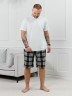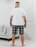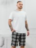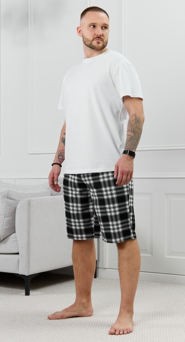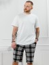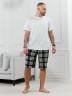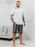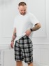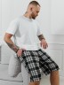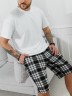 Шорты мужские из трикотажного полотна "кулирка" в клетку, свободного покроя, на притачном поясе с эластичной тесьмой внутри, с карманами в боковых швах. Нижние срезы обработаны подгибкой.