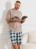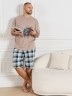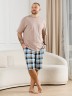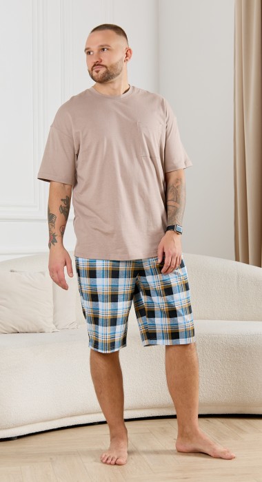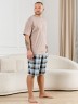 Шорты мужские из трикотажного полотна "кулирка" в клетку, свободного покроя, на притачном поясе с эластичной тесьмой внутри, с карманами в боковых швах. Нижние срезы обработаны подгибкой.