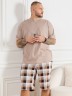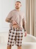 Шорты мужские из трикотажного полотна "кулирка" в клетку, свободного покроя, на притачном поясе с эластичной тесьмой внутри, с карманами в боковых швах. Нижние срезы обработаны подгибкой.