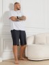 Шорты мужские из гладкокрашеного трикотажного полотна "пике", свободного покроя, на притачном поясе с эластичной тесьмой внутри, с карманами в боковых швах. Нижние срезы обработаны подгибкой.