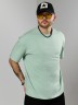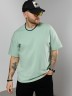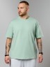 Футболка мужская из трикотажного полотна "кулирка с лайкрой" классического покроя, с короткими втачными рукавами и горловиной овальной формы, обработанной втачной планкой. Нижние срезы рукавов и изделия обработаны подгибкой. Планка горловины и подогнутые края рукавов обрезаны по сгибам с образованием открытых срезов, закручивающихся на лицевую сторону изделия, образуя оригинальный край.