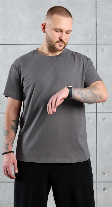 Футболка мужская из гладкокрашеного трикотажного полотна "кулирка" классического покроя со слегка удлиненными плечевыми швами, короткими втачными рукавами и горлорвиной овальной формы, обработанной втачной планкой. В центре верхней части спинки настрочен декоративный элемент прямоугольной формы. По горловине настрочена двойная отделочная строчка. Низ рукавов и изделия обработаны подгибкой.