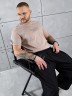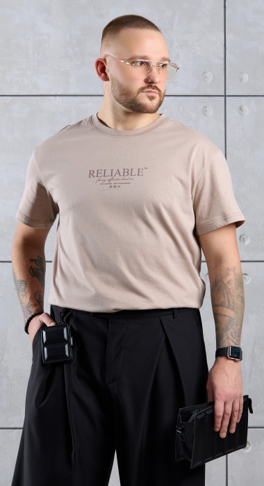 Футболка мужская из гладкокрашеного трикотажного полотна "кулирка" классического покроя со слегка удлиненными плечевыми швами, короткими втачными рукавами и горлорвиной овальной формы, обработанной втачной планкой. В центре верхней части спинки настрочен декоративный элемент прямоугольной формы. По горловине настрочена двойная отделочная строчка. Низ рукавов и изделия обработаны подгибкой.