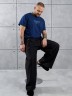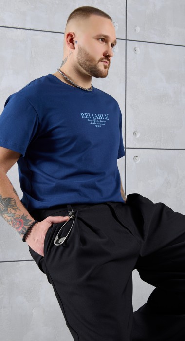 Футболка мужская из гладкокрашеного трикотажного полотна "кулирка" классического покроя со слегка удлиненными плечевыми швами, короткими втачными рукавами и горлорвиной овальной формы, обработанной втачной планкой. В центре верхней части спинки настрочен декоративный элемент прямоугольной формы. По горловине настрочена двойная отделочная строчка. Низ рукавов и изделия обработаны подгибкой.