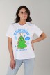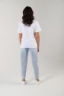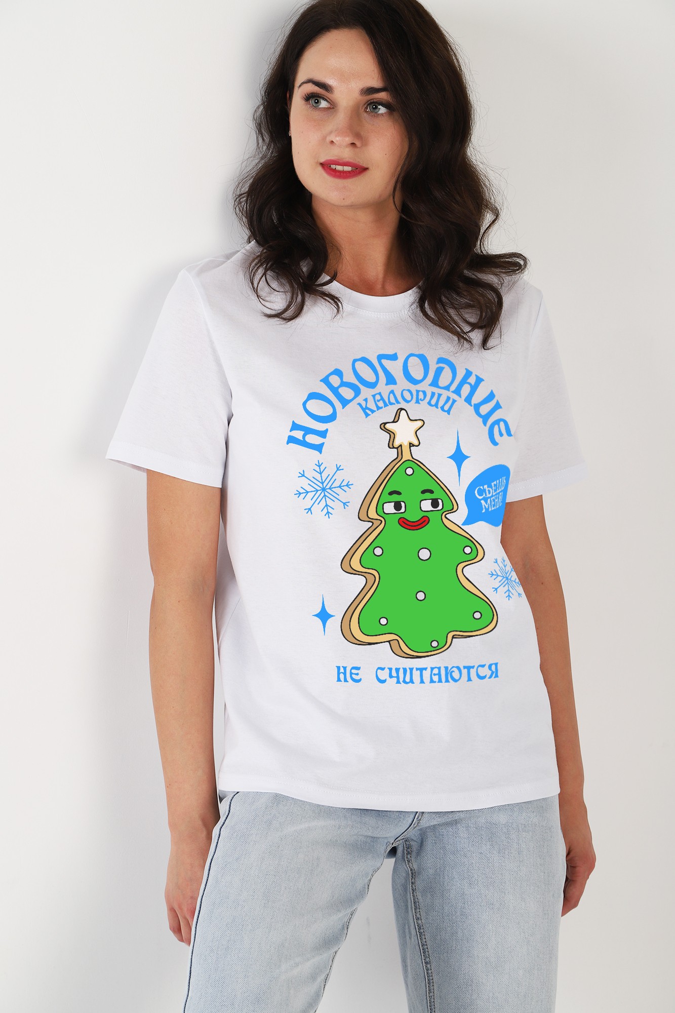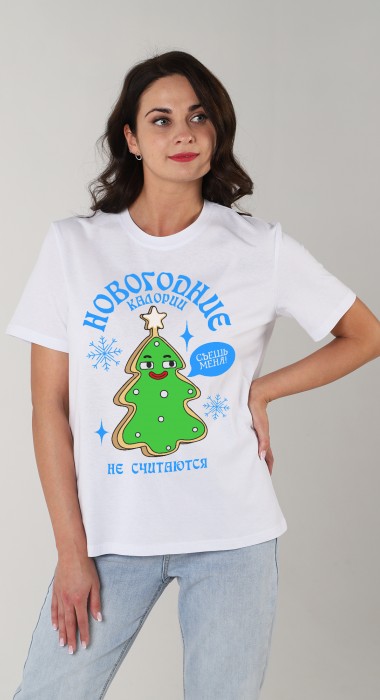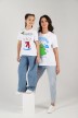 Футболка женская классического покроя: с короткими втачными рукавами, горловиной овальной формы, обработанной втачной планкой, и принтом в центре переда, выполненным в технике шелкографии. По шву втачивания планки в горловину настрочена отделочная строчка на двухигольной машине. неижние срезы рукавов и изделия обработаны подгибкой.