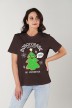 Футболка женская классического покроя: с короткими втачными рукавами, горловиной овальной формы, обработанной втачной планкой, и принтом в центре переда, выполненным в технике шелкографии. По шву втачивания планки в горловину настрочена отделочная строчка на двухигольной машине. неижние срезы рукавов и изделия обработаны подгибкой.