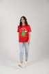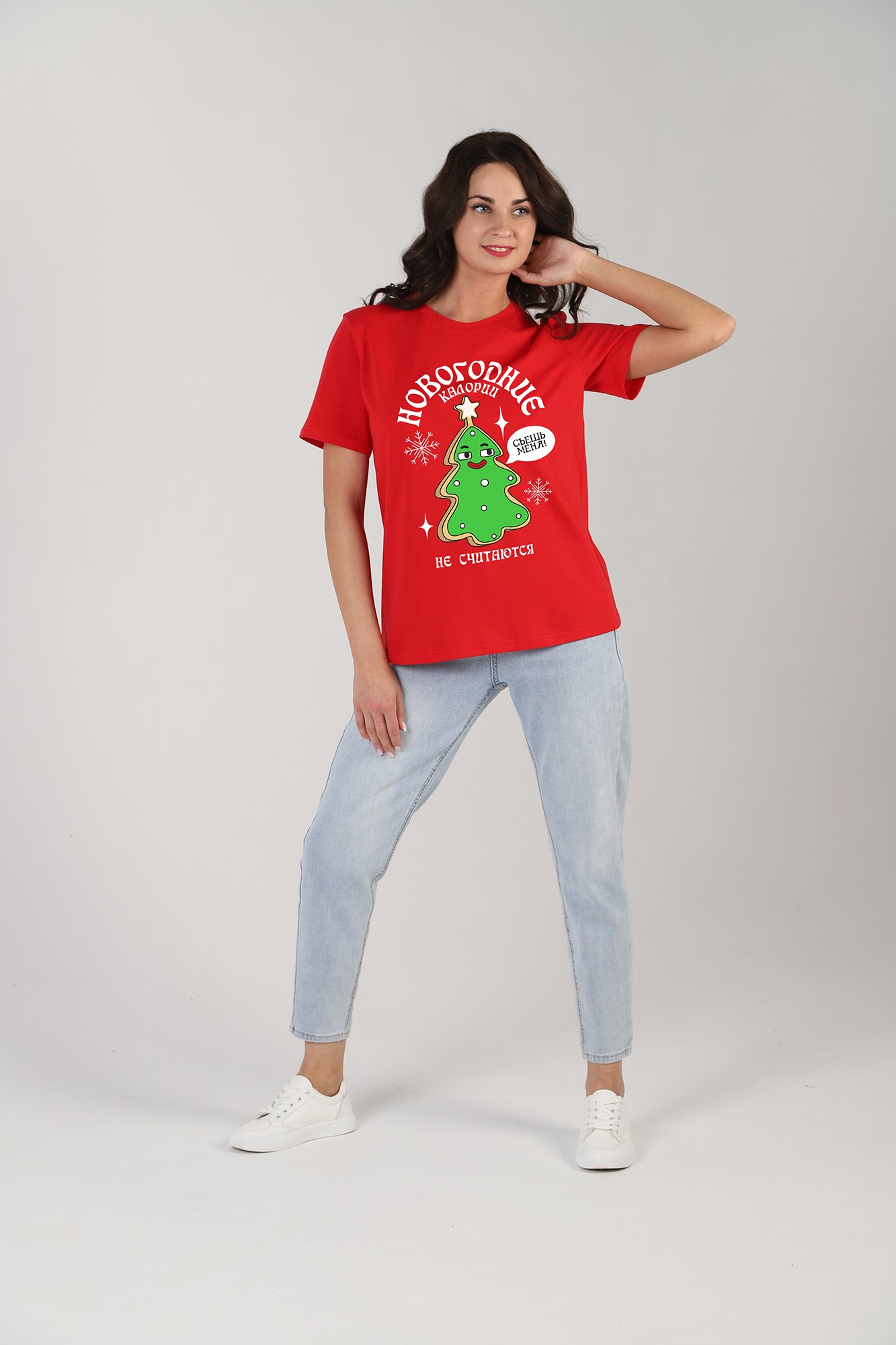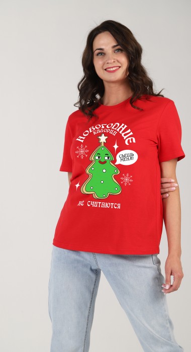 Футболка женская классического покроя: с короткими втачными рукавами, горловиной овальной формы, обработанной втачной планкой, и принтом в центре переда, выполненным в технике шелкографии. По шву втачивания планки в горловину настрочена отделочная строчка на двухигольной машине. неижние срезы рукавов и изделия обработаны подгибкой.
