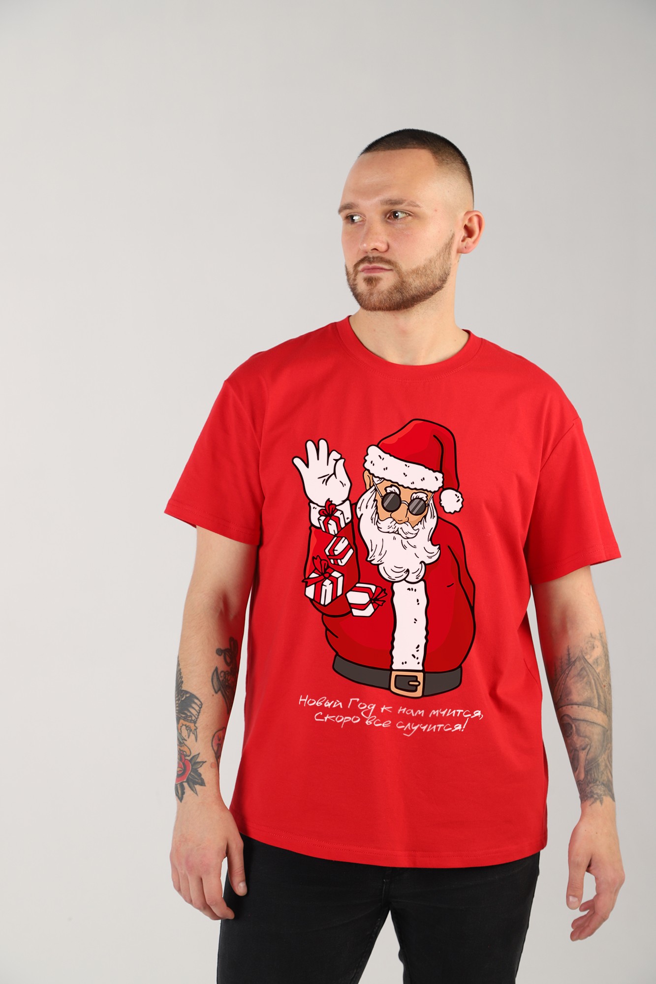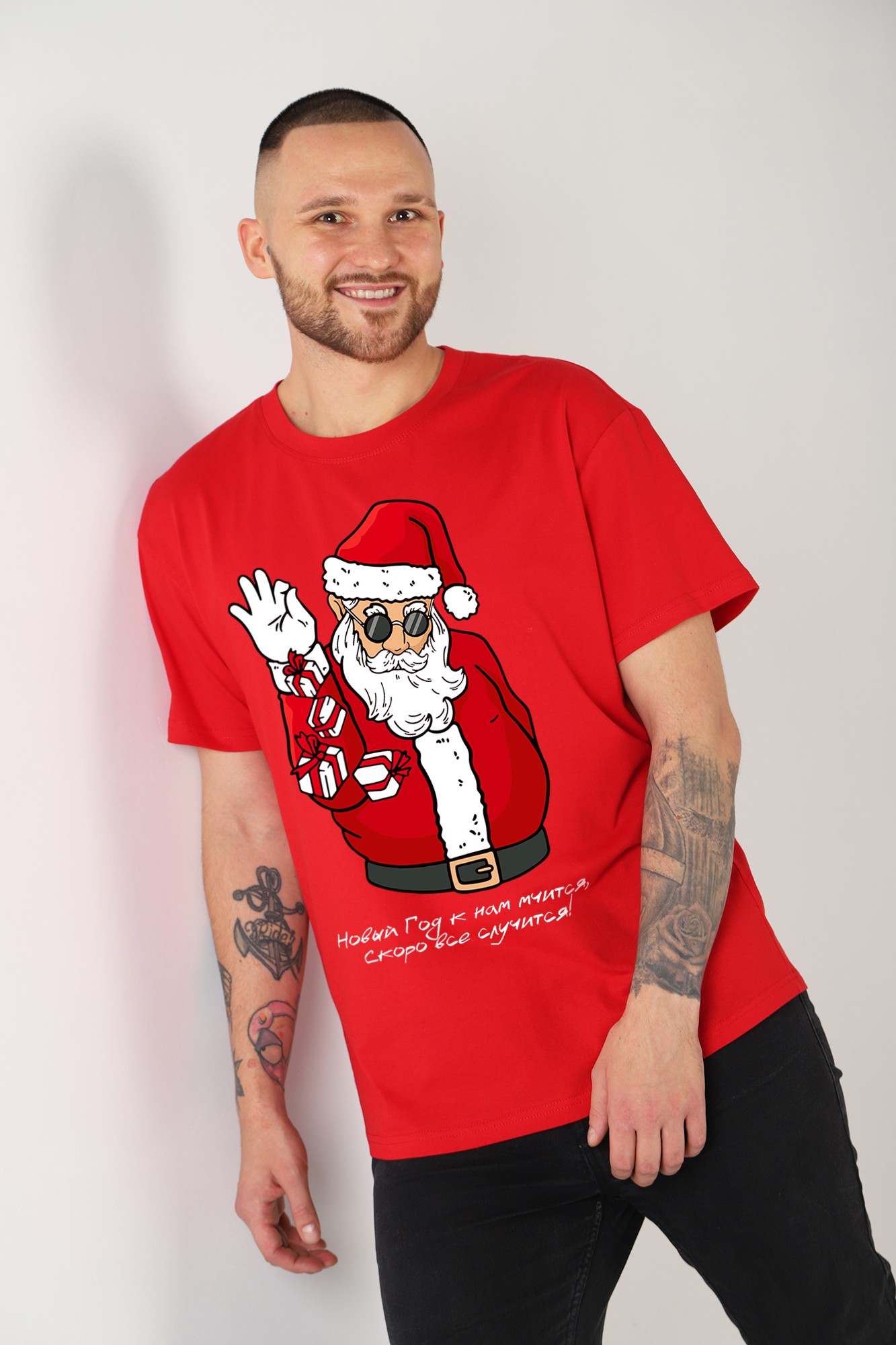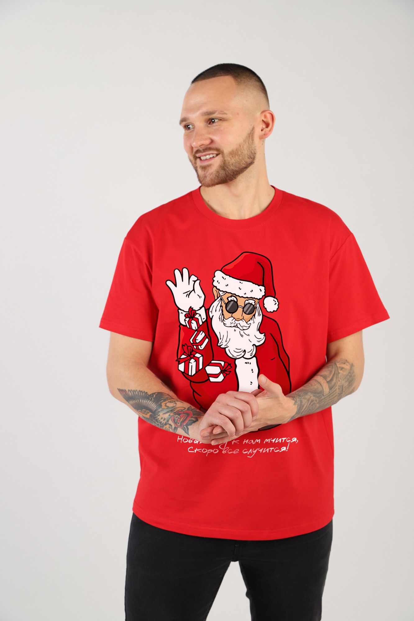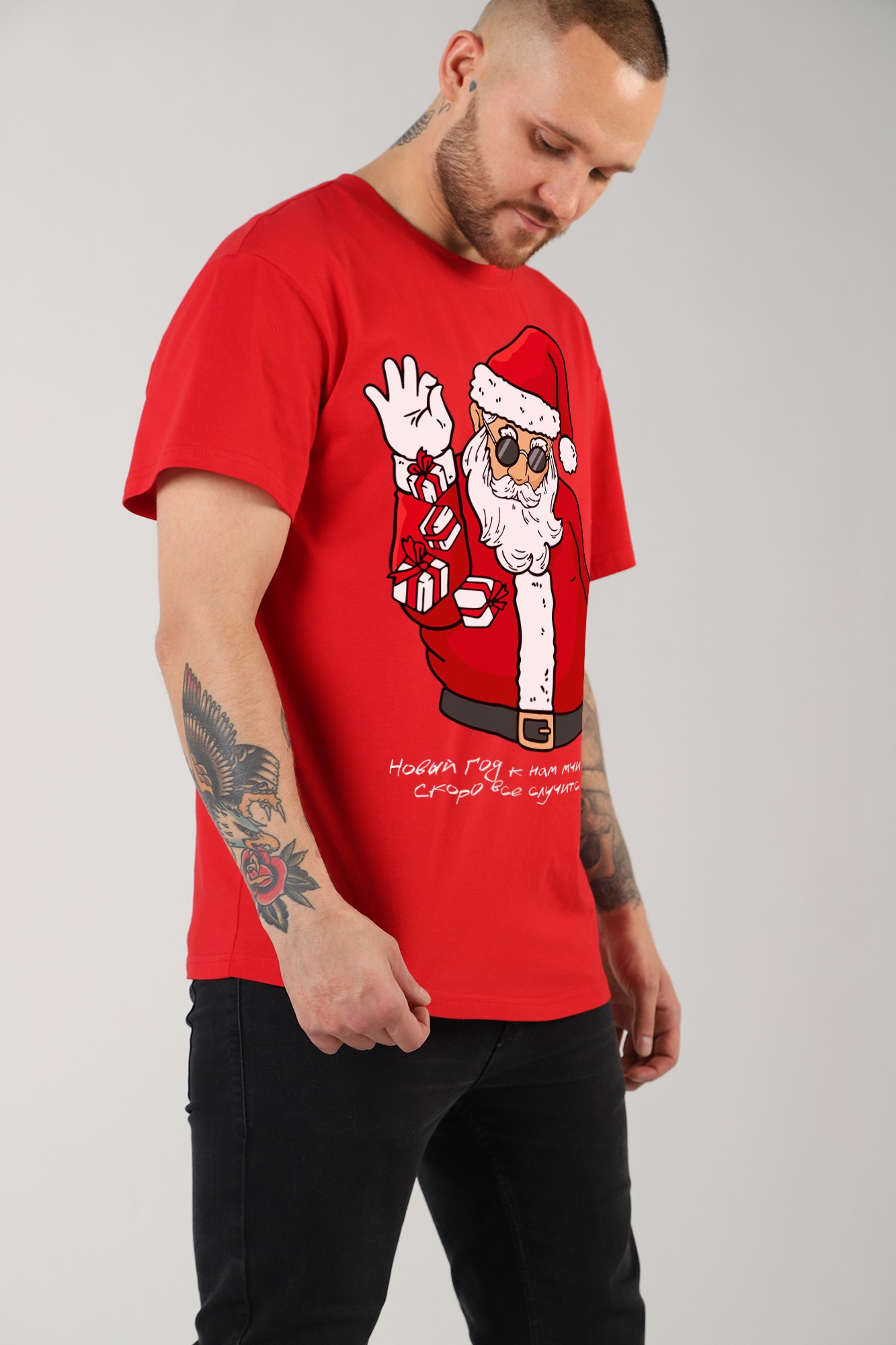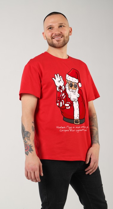 Футболка мужская классического покроя: с короткими втачными рукавами, горловиной овальной формы, обработанной втачной планкой, и принтом в центре переда, выполненным в технике шелкографии. По шву втачивания планки в горловину настрочена отделочная строчка на двухигольной машине. неижние срезы рукавов и изделия обработаны подгибкой.