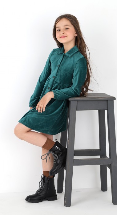 Актуальное платье для девочки, из трикотажного вельвета. Модель с застёжкой на пуговицы, с отложным воротником, отрезной "юбкой" на сборке, карманами в боковых швах. Рукава по низу собраны на эластичную тесьму. Отличный выбор для девочек разных возрастов.