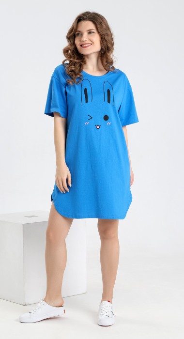 Туника молодежная из трикотажного полотна «кулирка» с набивным рисунком и принтом. Прямого силуэта, с коротким втачными рукавами, горловиной овальной формы, окантованной основным материалом, принт в технике «шелкографии» на полочке и фигурной линией низа.